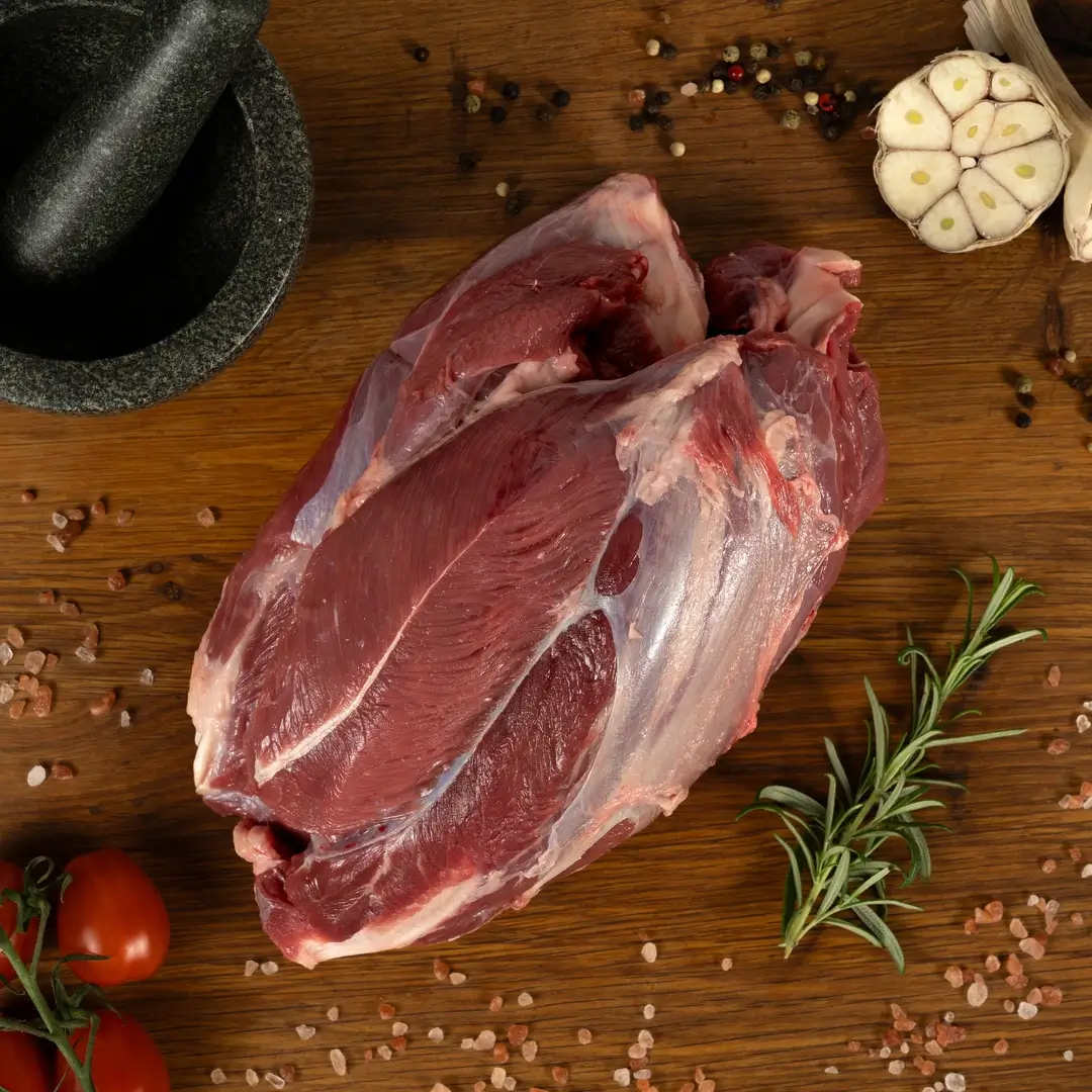 Mięsista gicz wołowa z bydła rasy Highland, idealna do dań wymagających długiego, powolnego gotowania. Dzięki zawartości szpiku i tkanki łącznej nadaje potrawom wyjątkową głębię smaku i aromatu, a mięso staje się delikatne i soczyste.