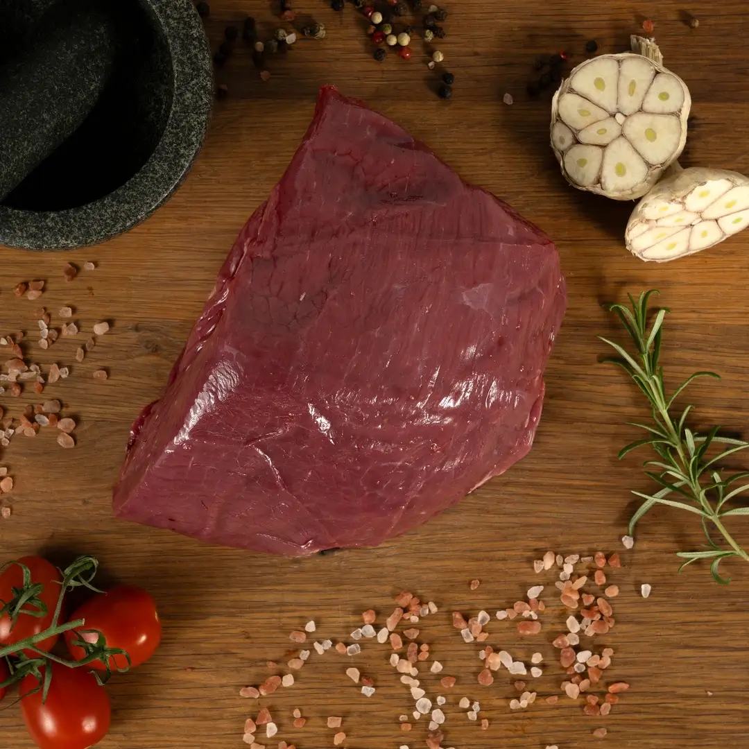 Krzyżowa z bydła rasy Highland to kawałek wołowiny o zwartej strukturze i łagodnym smaku. Dzięki niewielkiej ilości tłuszczu i odpowiedniej teksturze świetnie sprawdza się zarówno w daniach duszonych, jak i pieczonych. To uniwersalne mięso, które z powodzeniem wykorzystasz w codziennej kuchni.